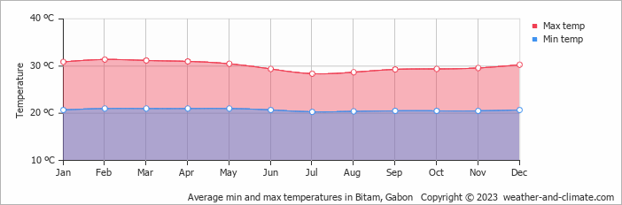 La partie continentale du pays étant située entre les parallèles 1° N et 2°10' N le climat n'est pas tout à fait le même qu'en France ! Pour se faire une idée des températures et précipitations moyennes voici un comparatif entre Paris et Bitam (c'est une ville du Gabon à la même latitude que Bata avec sensiblement le même climat qu'en G-E) :